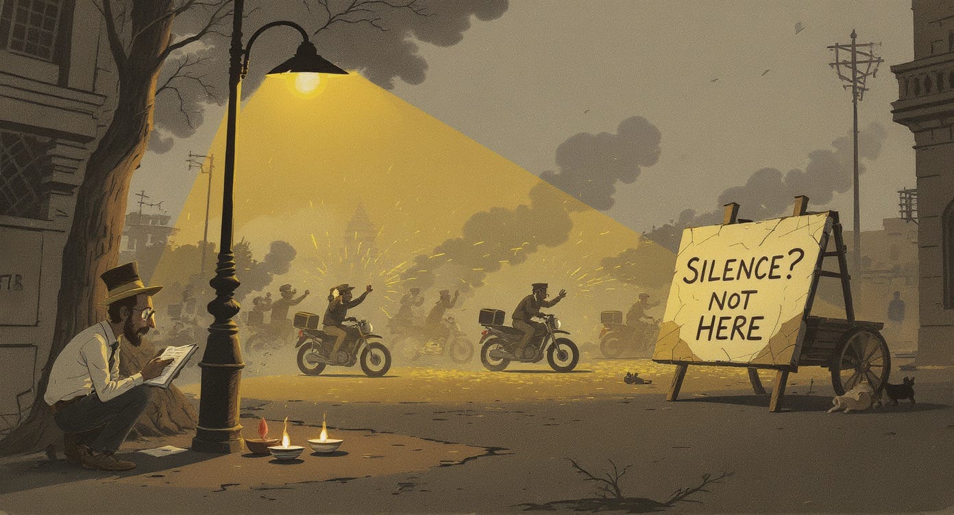 Coming to the city, the first cracker went off at noon. Noon. The sun itself was still shining when some brave patriot decided to declare independence from silence. The explosion was so loud it rearranged my spine. A flock of pigeons took to the air in terror, collided mid-flight, and landed as abstract art on a Suzuki.
